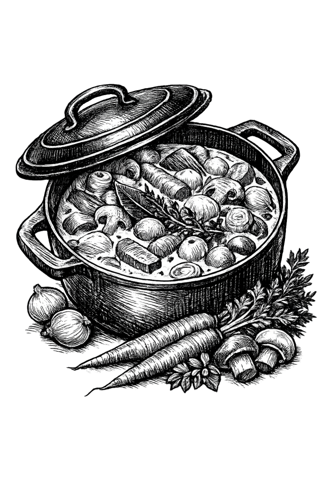 Cette blanquette joue l’équilibre entre réconfort et légèreté. La sauce est bien nappante, douce et ronde, sans lourdeur ni acidité marquée. Les champignons apportent le fond umami indispensable, pendant que le vin blanc structure la sauce sans prendre le dessus. Ici, tout repose sur une liaison propre et une cuisson calme.